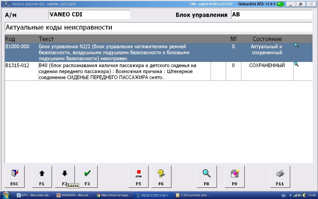 А как должна вести себя система SRS при съеме переднего пассажирского кресла?? У меня при отключении красного разъема на пассажирском кресле при выключенном зажигании начинает пищать зуммер на панели приборов, потом как отсоединяешь кресло от пола - пищать перестает. Оказывается в правом переднем гнезде для ножки кресла на полу стоит концевик который отслеживает установлено ли кресло. ??? У меня при диагностике СТАРОМ выдало ошибки:B1000-000 - неисправен блок управления N2/2 и B1315-012 - сиденье переднего пассажира снято. Если так продуман момент снятия кресла, то почему ошибка B1315-012 присутствует и как должна вести себя сигнальная лампа "AIRBAG OFF". Сигнальная лампа SRS на панели и сигнальная лампа "AIRBAG OFF" загораются при включении зажигания, через 4 сек тухнут обе, но лампа SRS загорается снова и горит постоянно. Должна ли при исправном блоке SRS гореть лампа "AIRBAG OFF" при съеме пассажирского кресла???