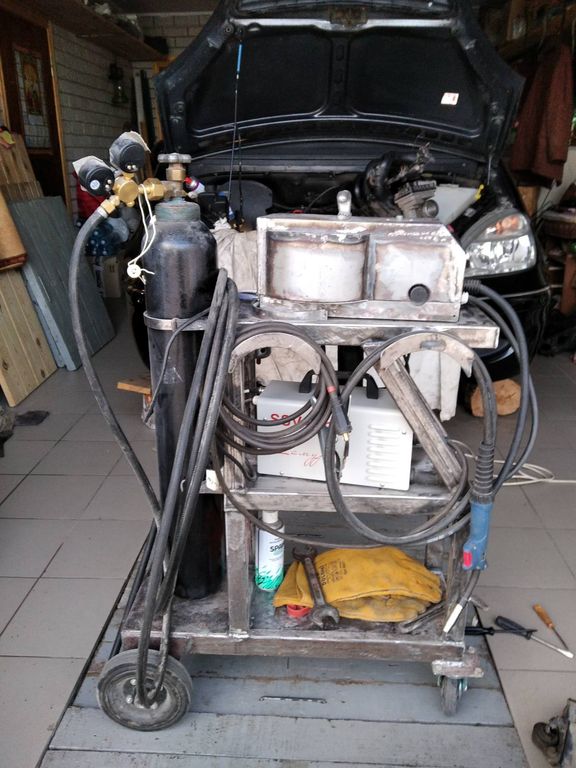 Для выкручивания заломов сначала думал использовать индукционную приблуду для нагрева деталей (с работы принести), но когда мне показали ее размер в механической мастерской, я понял, что нагреется не только болт, но и машина до задних сидений, поэтому приступил к плану "В" и притянул с дома "тяжелую артиллерию".