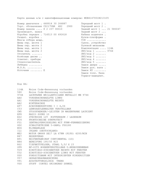 Помогите расшифровать , что то сайт не видит нечего WDB2100061A8923670 либо WDB2100061A892367