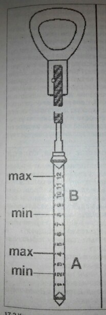 Евгений074 писал(а):не могу найти информации каким делениями на щупе соответствует нормальный уровень масла