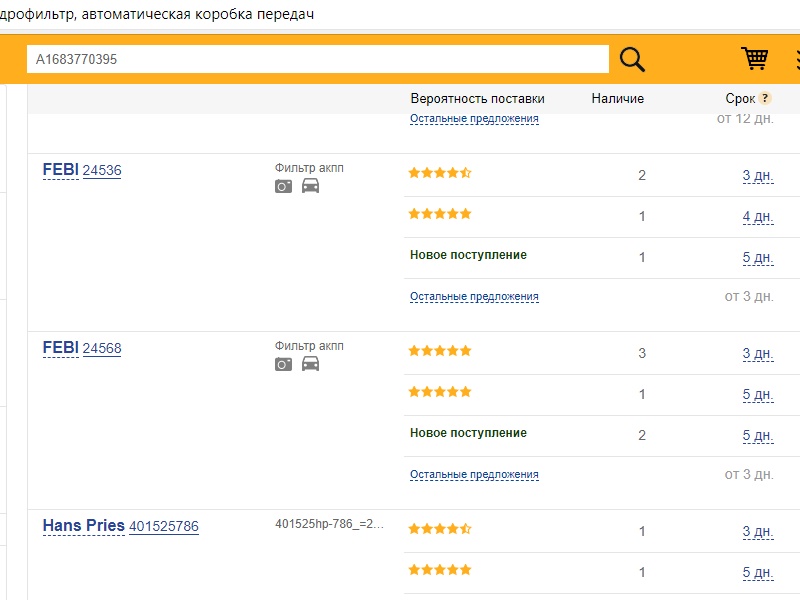 Поэтому и возник вопрос. по вину то одни аналоги, если на то пошло, то можно и оригинал заказать, но он же по вину не подходит. возник вопрос можно ли оригинальный фильтр А1683770295 заменить оригинальным фильтром А1683770395. Может вы сталкивались. В принципе, если вы считаете, что разницы никакой, то заказываем оригинал А1683770395 или Febi.