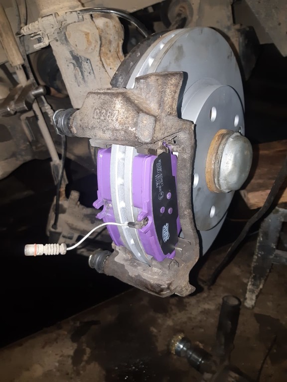 Гламурные тормоза, хотел колодки брембо, но ждать долго и продаван посоветовал эти, повелся, заказали, Семён поставил, и ночью сегодня прислал мне это фото, я утром немного о...уел, ну да ладно, машина все таки жены.