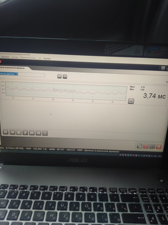 Съездил замерил топливо. Замер на горячую показал: На холостом ходу 2.8-3. При оборотах около 4000 2.5-2.8. На ходу около 2.5-2.8. Фильтр менялся около 3000 назад. Решили заменить насос. Временно поставили вазовский. Замер на холостом ходу 4.2. В движении ниже 4.1 не опускался. Сразу заметил, что вазовский насос на много шумнее. Но пока работает и ладно. После замены стер ошибку по мотору (P0170). Где то в промежутке с 12 до 16:30 катался по своим делам по городу. Ошибка не выскочила. Будем надеяться, что проблема ушла. На горячую еще посмотрел время впрыска. Все потребители (фары, печки и т.д.) выключены. Время впрыска заметно стало меньше.