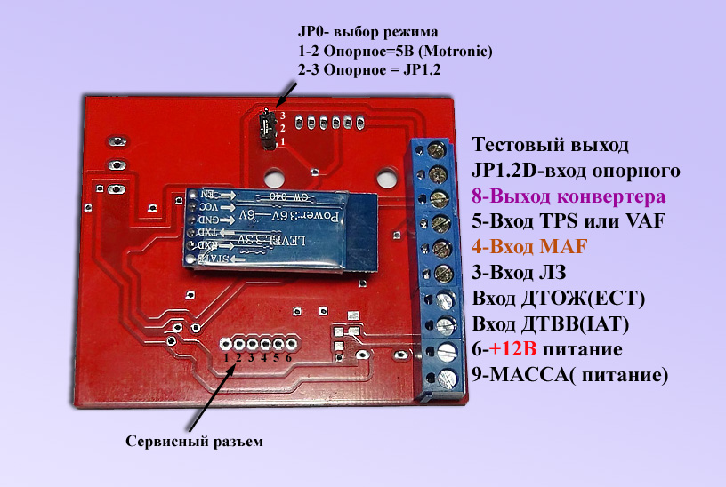 Может и инжекторы проблемные т.к. под капотом попахивает бензином. И вроде там промывали форсунки и сальники меняли какие то, но помогло не особо - запах бензина остался. А ваши ребята не рассказывали как прогружали готовую таблицу в конвертор? Сталкивались ли со сложностями. Я думал просто залью туда нужную таблицу и делов, но в реале наверно нужно что-то еще там настраивать. Pin c форума Pilot пока молчит... Кстати никто не знает как надо ставить перемычку JP0 опорного напряжения на конверторе? Там два положения и зависит от типа MAF или VAF. У меня стоит 1-2 и я не знаю какой тип ДМРВ у меня Фото во вложении. Также обновить прошивку конвертера не смог - не нашел ее на сайте Pilot для моейго конвертера последней версии Bluetooth v2. Не знаю важно это или нет.