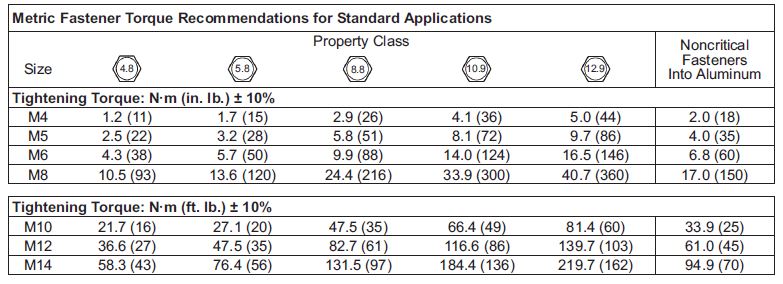 Alexander-sem писал(а):Универсальная таблица моментов затяжки резьбовых соединений. С некоторых пор на головках болтов и на гайках выбивается класс прочности материала (в виде цифр) из которого они изготовлены.