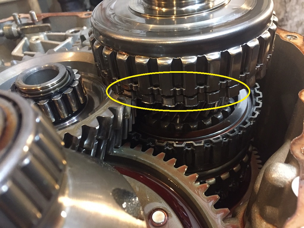 Из-за конструктивных особенностей коробки и гидроблока, на одном из этапов засоренияи старения электрики подаваемое избыточное давление на этот пакет разрывает поршнем металл барабана (справа) или вырывает стопорное кольцо, что приводит к проскальзыванию и необходимости замены всего комплекта корзины сцепления К1.