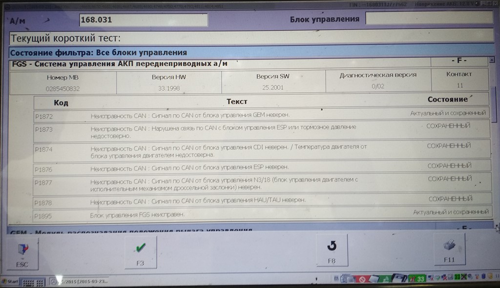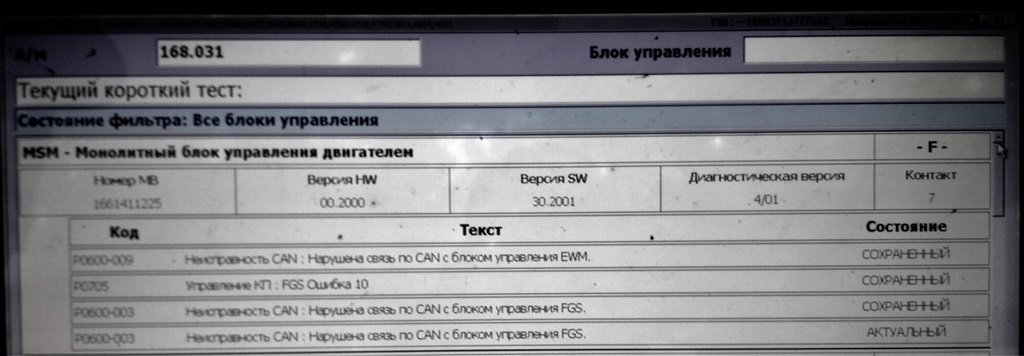 Решили ехать в единственный у нас центр по ремонту Мерсов. Был проверен уровень масла и он оказался ниже мин - пришлось купить FEBI с каким то 14 допуском и долить около 2х литров. Понимаю что там могло быть другое но рискнули...далее, после подключения сканера показало целую кучу ошибок (картинки прилагаются) и приговорили блок управления АКПП (FGS) на замену. Что удивительно, после сброса ошибок - машина работает отлично минут 10-15 все скорости переключаются индикация скоростей есть, переключения плавные, все скорости работают, но потом опять толчок и F...Решил перепроверить их приговор и связался удаленно с москвичами - центром по ремонту акпп и после показа им ошибок и консультации с их электриком сказали с почти со 100% вероятностью что дело в проводке а не в блоке управления, так как машина стояла долго, либо контакты где то прохудились либо грызуны перегрызли. Мол не свзяи блоков мозгов по CAN шине. Отсюда и все проблемы мол. Решил самостоятельно посмотреть что там вообще внутрях акпп