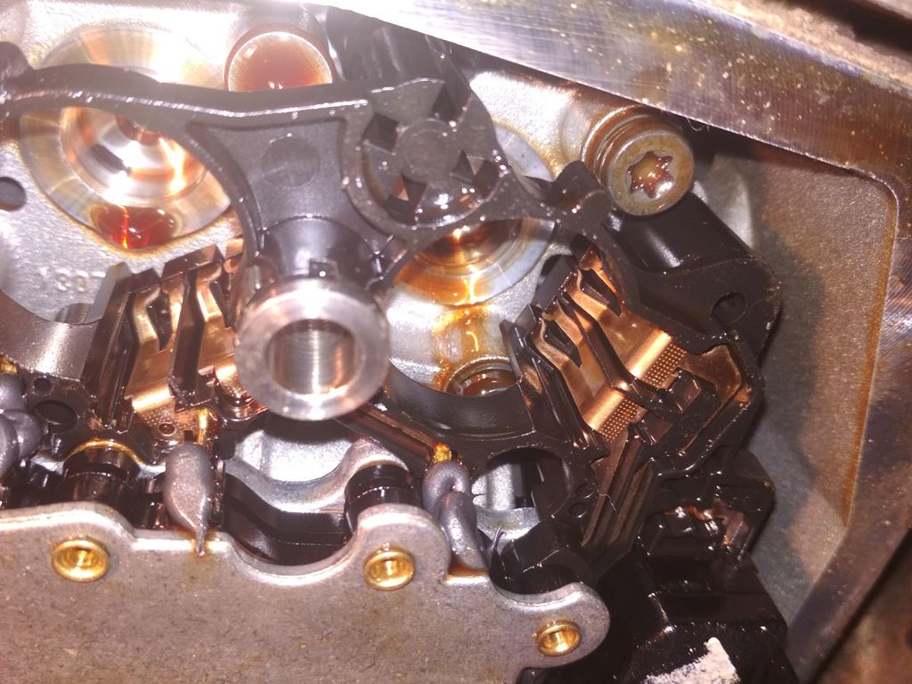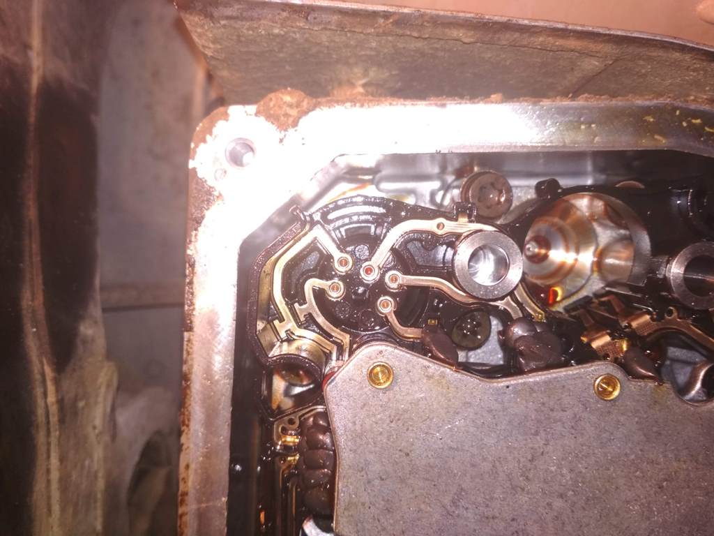 lokky55 раз уж полезли снимать плату. Снимайте ее. Выняли 5 соленоидов, далее открутили 2 болта, 1 коротки и 1 длинный. Вы это все проделали.