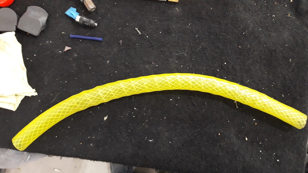 Что из себя представляет дренажный отвод, пружинка обтянутая паролоном и целофаном снаружи. Прикинув что к чему, пошел русской дорогой. В ближайшем хозмаге купил армированный поливочный шланг на 15, продел в него оставшуюся пружину от рассыпанного дренажа, ну чтобы перегибов не получилось,получил вот такое чудо. Установил поместу, затянул стяжкой по заводу. Нигде не трет, ни где не перегибается. Разбогатею, разорюсь на шумоизоляцию, заменю колхоз на ориджиналь.