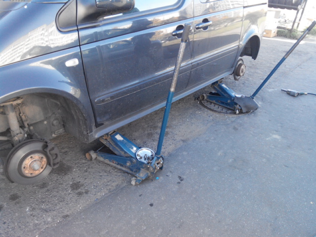 Последняя фотка машина стоит на колесе? Если да то чего так высоко задрана подвеска?