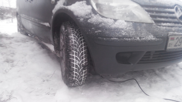 ) Сразу почувствовал,что стыки и ямки стали ощутимее. Хоть и производитель обещал,что добавит в состав резины Super Silika(это волшебный ингридиент), но по ходу в мои колеса сыпанул его маловато. Резина стала заметно жестче,хотя...это вообще ни на что не повлияло.Сцепление со снегом и льдом отличное. Для не шипованной резины,конечно. И несколько случаев в городе,когда передо мной люди на Primera, Vectra C и остальные другие Citroen...ы тупо буксовали,там где "Ванька" на Dunlop легко проезжал, почти убедили меня ,что зимняя обувь у нашего Vaneo правильная. А случай,когда утром первого января, мне пришлось выпускать с дачного участка Цитрамон"Xara" и Хонду "Джаз" , так как Ванька их запер, окончательно меня убедил. Я просто завел машину и выехал, а Цитрамон и Джаз пришлось выталкивать.По Ванькиной колее. Когда люди уехали. "Ванео" легко заехал на их место.И через некоторое время так же легко выехал. Эксперемента ради пробовал засадить его в снегу на колхозном поле. В итоге засадил. Но я совсем уже маньячил.