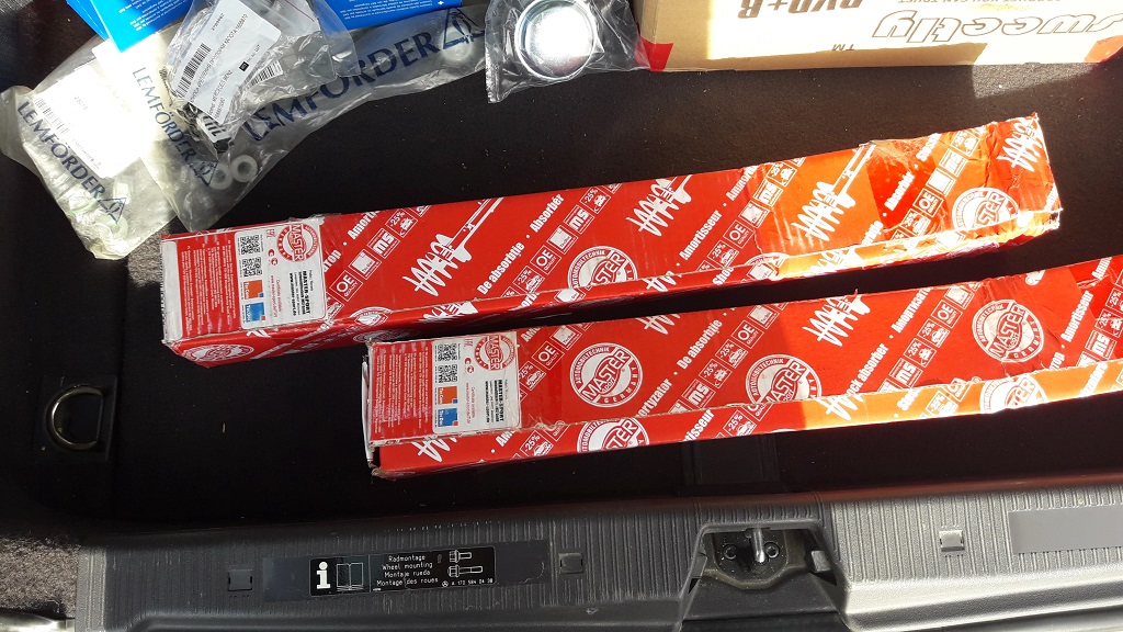 В первые же дни заказал запчасти из Москвы, 15 кг. А это: тормозные диски, сальники ведущего вала, подушки мотора все, фильтра топлевный и воздушный, колодки передние и задние, вкладку и упор под задние пружины, амортизаторы двери багажника, правое зеркало заднего вида Б/У(почти в цвет). Из китая заказал переключатель поворотников(стрекоза), резисторы ДМРВ. Позже заказал задние пружины и ремень. И теперь взял подшипники заднего рычага. В ходе эксплуатации поменял термостат, бензонасос, отремонтировал вал переключения передач(прозапас взял рабочий вал, лежит, ждет своего времени). Теперь очередь замены задних пружин и подшипников балки.