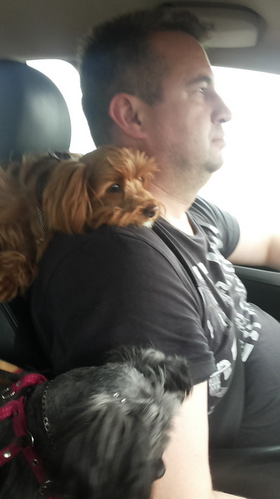 Обратно я рулила полдороги, но утомительно, не дальнобойщик я нифига. Еще и одна собака у нас на шее ездит, не согнать, так что, шея болит))) Вторая собака спала в спец.кресле на пледике.