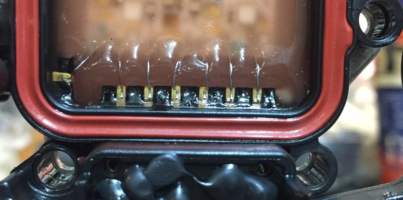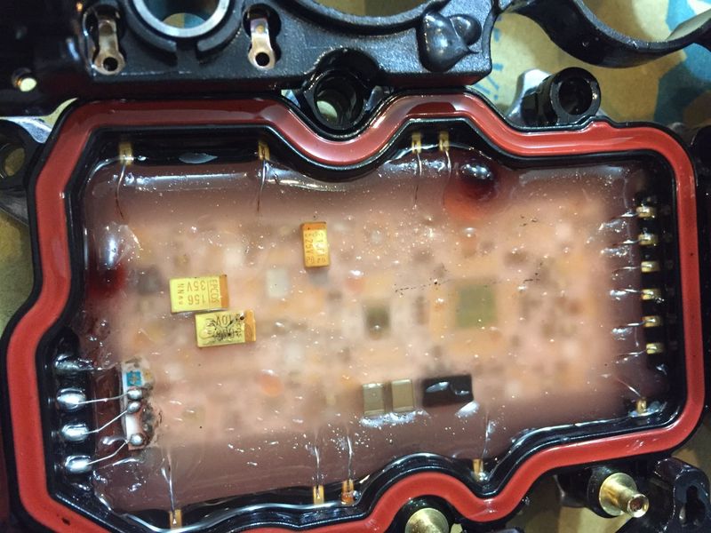 На этой плате кстати и не рабочий соленоид попался. Что не часто бывает. Правый не рабочий, трещина в районе правого контакта.