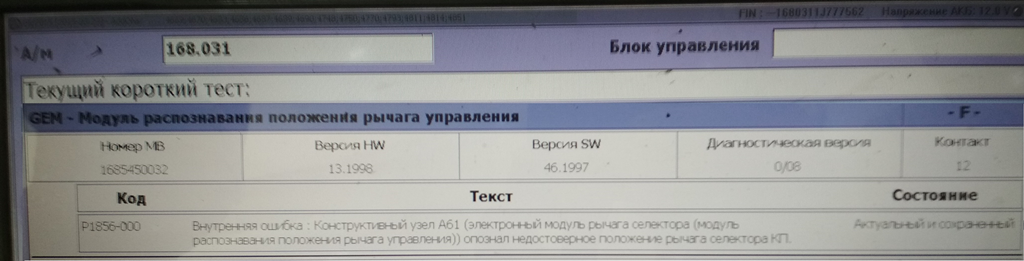 Так вот нарисовалась проблема, вообще их несколько (chek engine, ABS, ESP ошибки на табло + ЭГУР не работает) но эта на данный момент главная - АКПП 722.7 падает в аварийный режим. Сначала загорается F (видимо fault) сопровождается это резким толчком а затем если машину не заглушить и выкл/вкл зажигание - падает в аварийный режим и какая либо индикация скоростей пропадает вовсе.