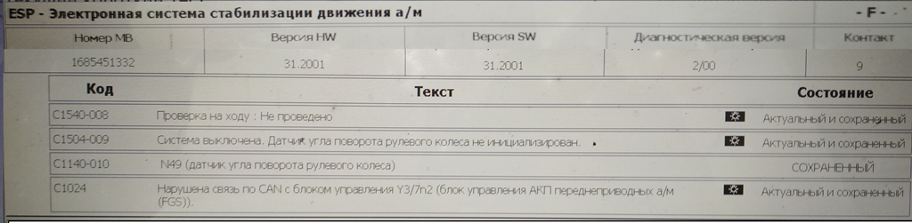 Решили ехать в единственный у нас центр по ремонту Мерсов. Был проверен уровень масла и он оказался ниже мин - пришлось купить FEBI с каким то 14 допуском и долить около 2х литров. Понимаю что там могло быть другое но рискнули...далее, после подключения сканера показало целую кучу ошибок (картинки прилагаются) и приговорили блок управления АКПП (FGS) на замену. Что удивительно, после сброса ошибок - машина работает отлично минут 10-15 все скорости переключаются индикация скоростей есть, переключения плавные, все скорости работают, но потом опять толчок и F...Решил перепроверить их приговор и связался удаленно с москвичами - центром по ремонту акпп и после показа им ошибок и консультации с их электриком сказали с почти со 100% вероятностью что дело в проводке а не в блоке управления, так как машина стояла долго, либо контакты где то прохудились либо грызуны перегрызли. Мол не свзяи блоков мозгов по CAN шине. Отсюда и все проблемы мол. Решил самостоятельно посмотреть что там вообще внутрях акпп