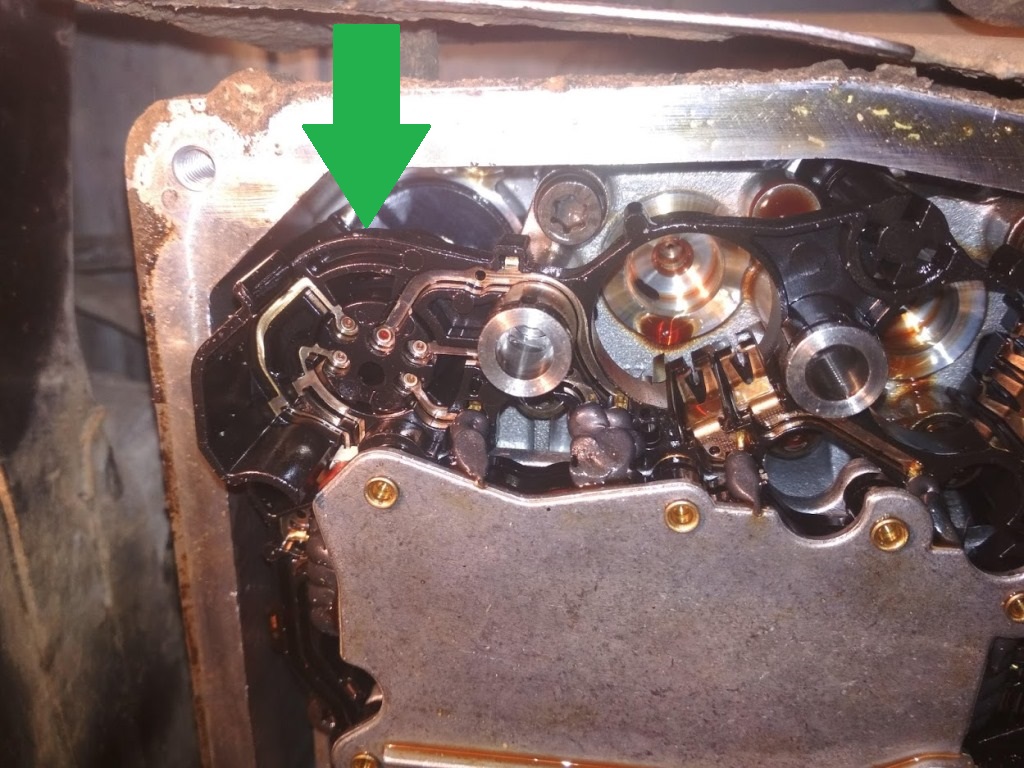 Macho спасибо вам большое за советы. Я почти все так и сделал - открутил 5 болтов (1 короткий) вытащил 5 соленоидов но плата не в какую не вытаскивается как раз в районе разъема. Вы написали что его надо провернуть против часовой стрелки - я этого не делал. Я так понимаю нужно засунуть примерно в место показанное стрелкой отверткой и зацепив разъем провернуть его? так? не совсем понимаю как его отсоединить, к нему же почти нет доступа пока плата на гидроблоке :unknown: будьте добры, объясните деревне как это сделать. Еще, пи'шите "придавливая сверху на разьем раскачивать плату тянув на себя" не совсем понял как я могу придавливать сверху - нужно что то типа крючка подцепить плату в районе разьема и тянуть на себя? так?